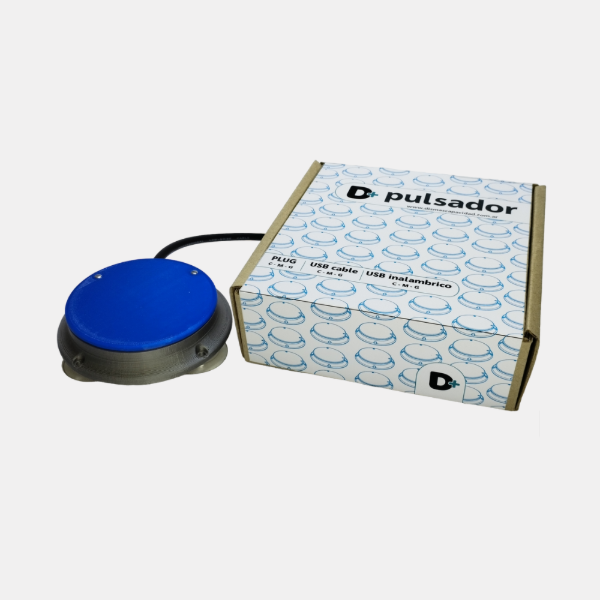 El pulsador USB es una solución práctica y accesible para manejar PC, tablets o celulares (con adaptador OTG). Emula el clic izquierdo del mouse y permite conectar un pulsador PLUG para el clic derecho.