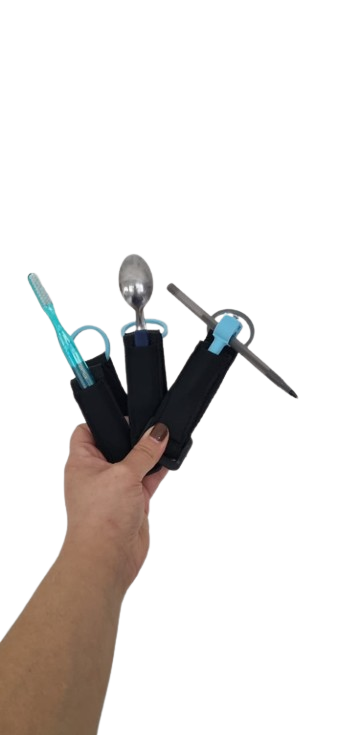 El bolsillo palmar está diseñado para facilitar la sujeción y manipulación de diferentes objetos, ofreciendo soporte y autonomía en la actividad diaria. Ideal para colocar cubiertos, lapiceras, adaptaciones u otros objetos finos.